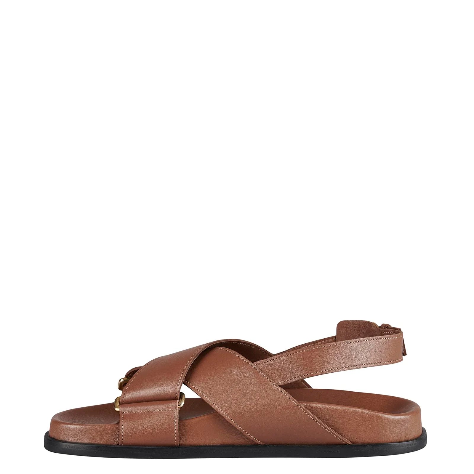 Effortlessly stylish, these footbed sandals simplify the process of dressing up. With a refined and adaptable smooth leather finish, they effortlessly complement any outfit in your wardrobe. The eye-catching crisscross buckle detail enhances the shoes, while the padded rounded-toe insole ensures a comfortable fit for all-day wear.